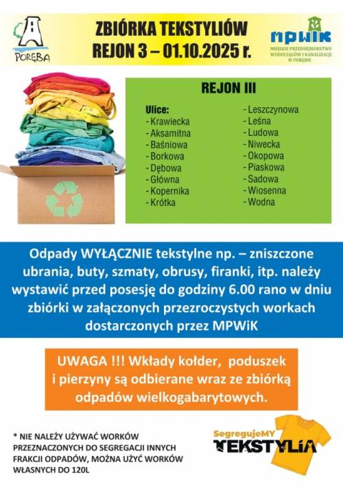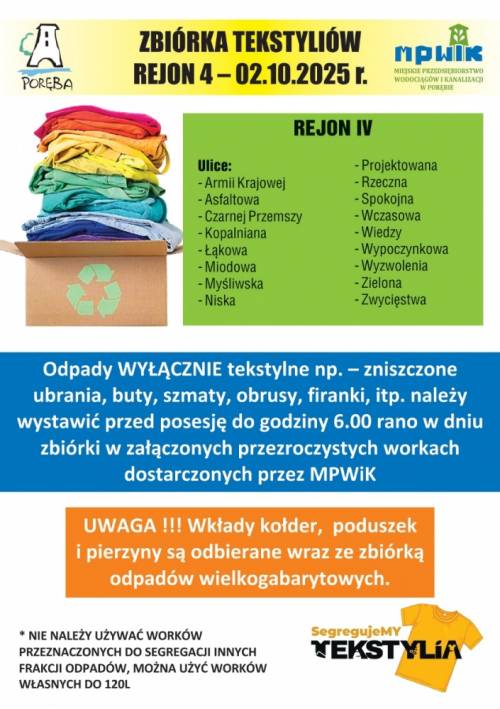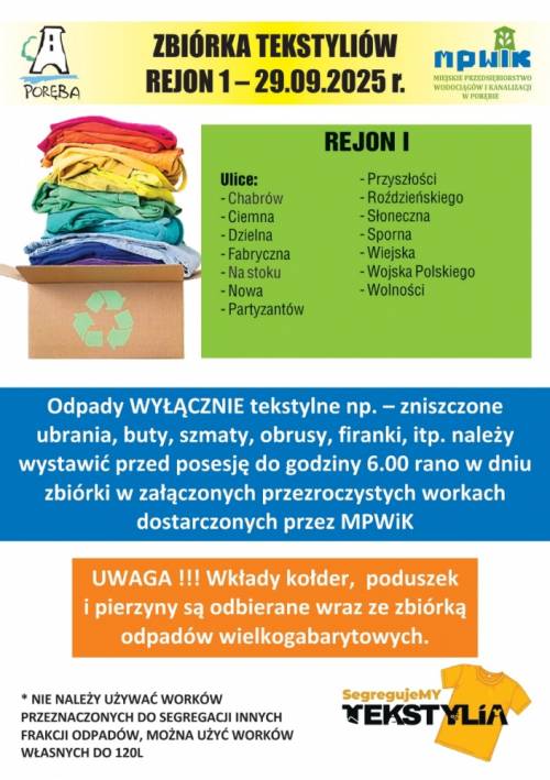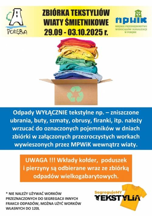 We wrześniu i październiku odbędzie się zbiórka odpadów tekstylnych, odzieży i obuwia. Akcja zostanie przeprowadzona na terenie miasta.